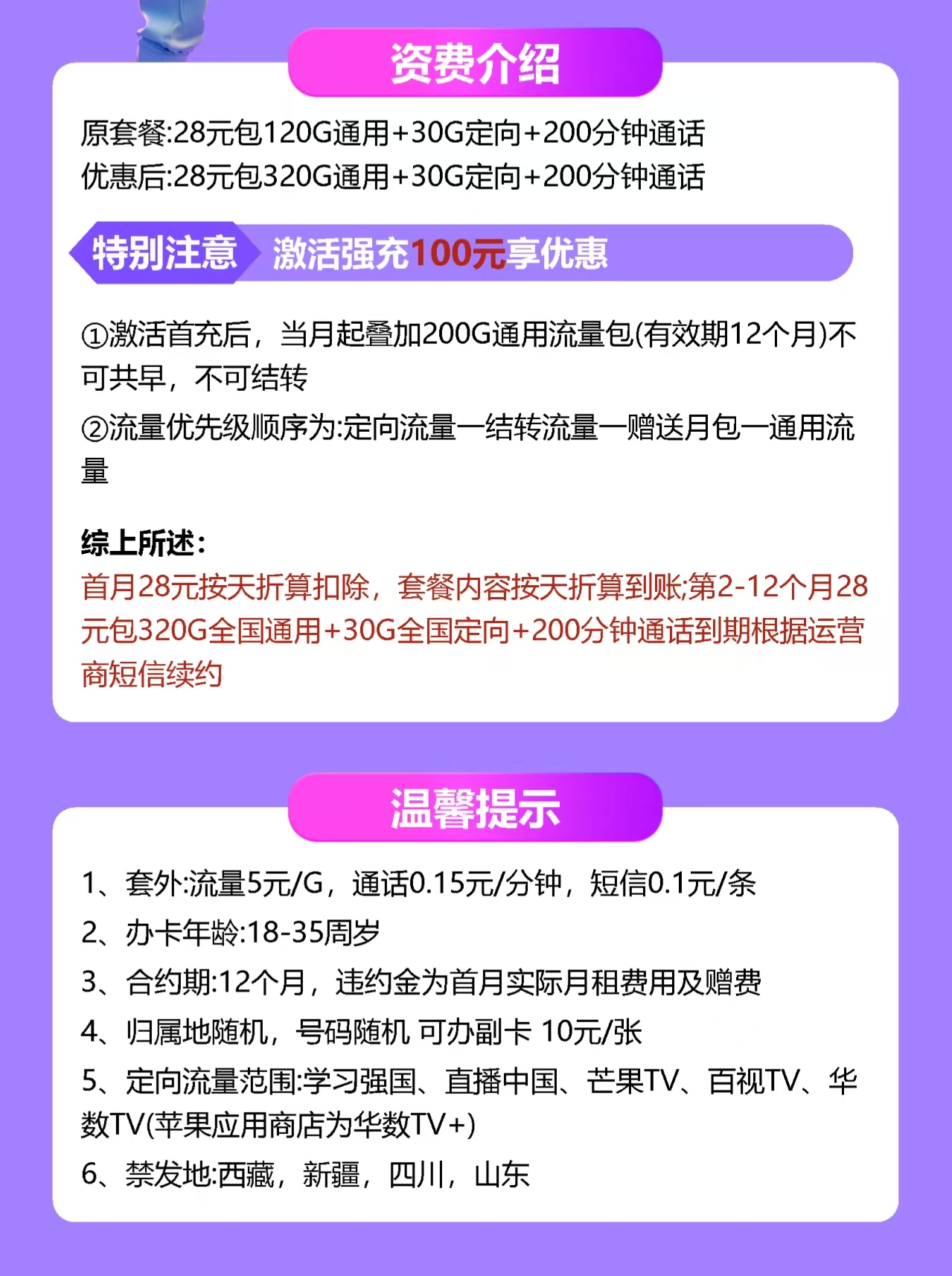 套餐资费、优惠及规则可能因地区或时间有所不同,具体请以运营商官方公告及实际办理为准。